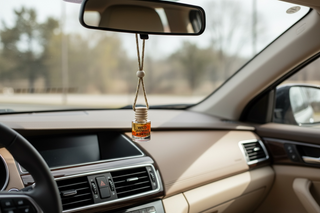 Unscrew the wooden cap and discard the plastic stopper. Screw the wooden cap back on and tilt the bottle upside down for 30–45 seconds to allow the oils to absorb into the wood. Then, simply hang from your rearview mirror.